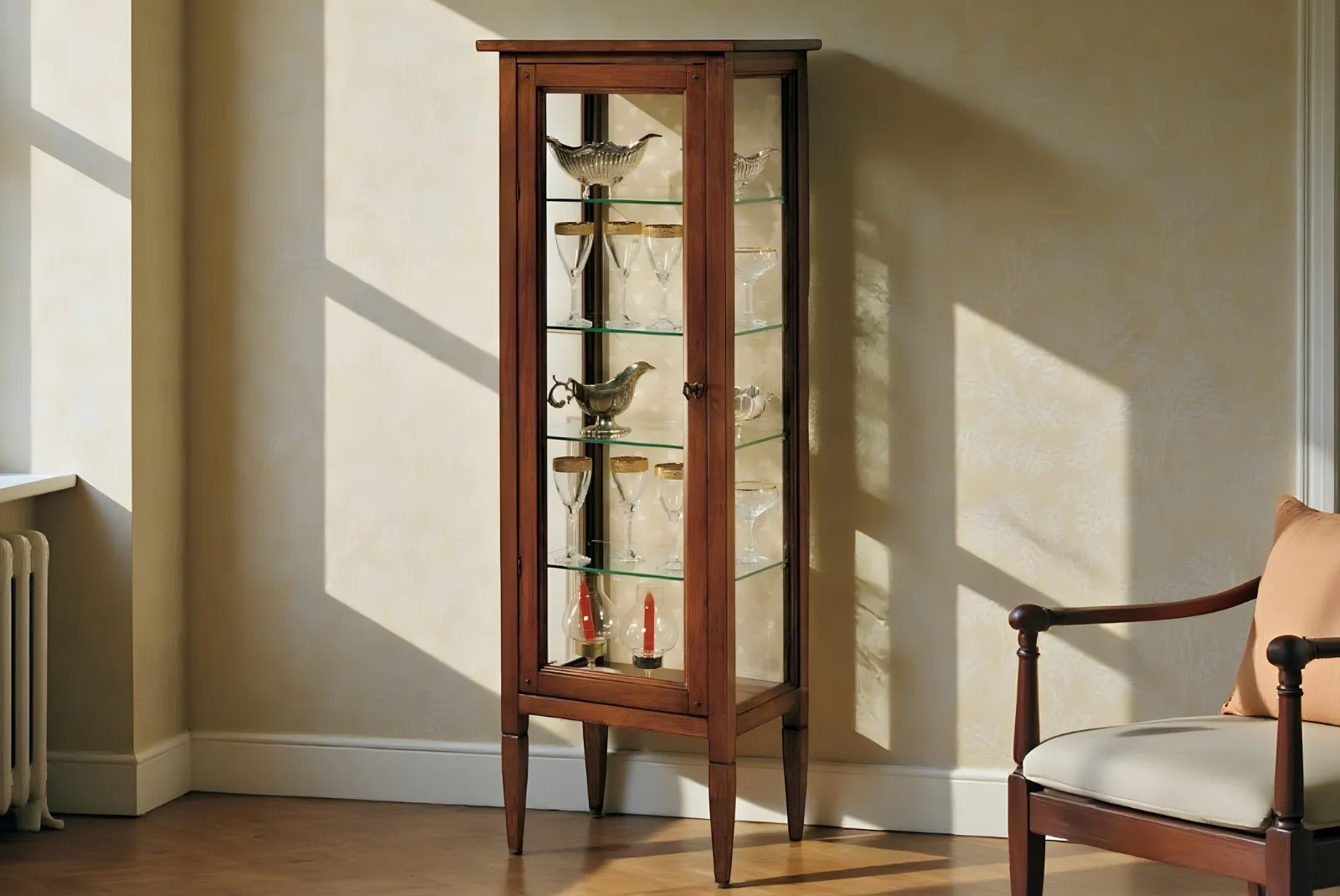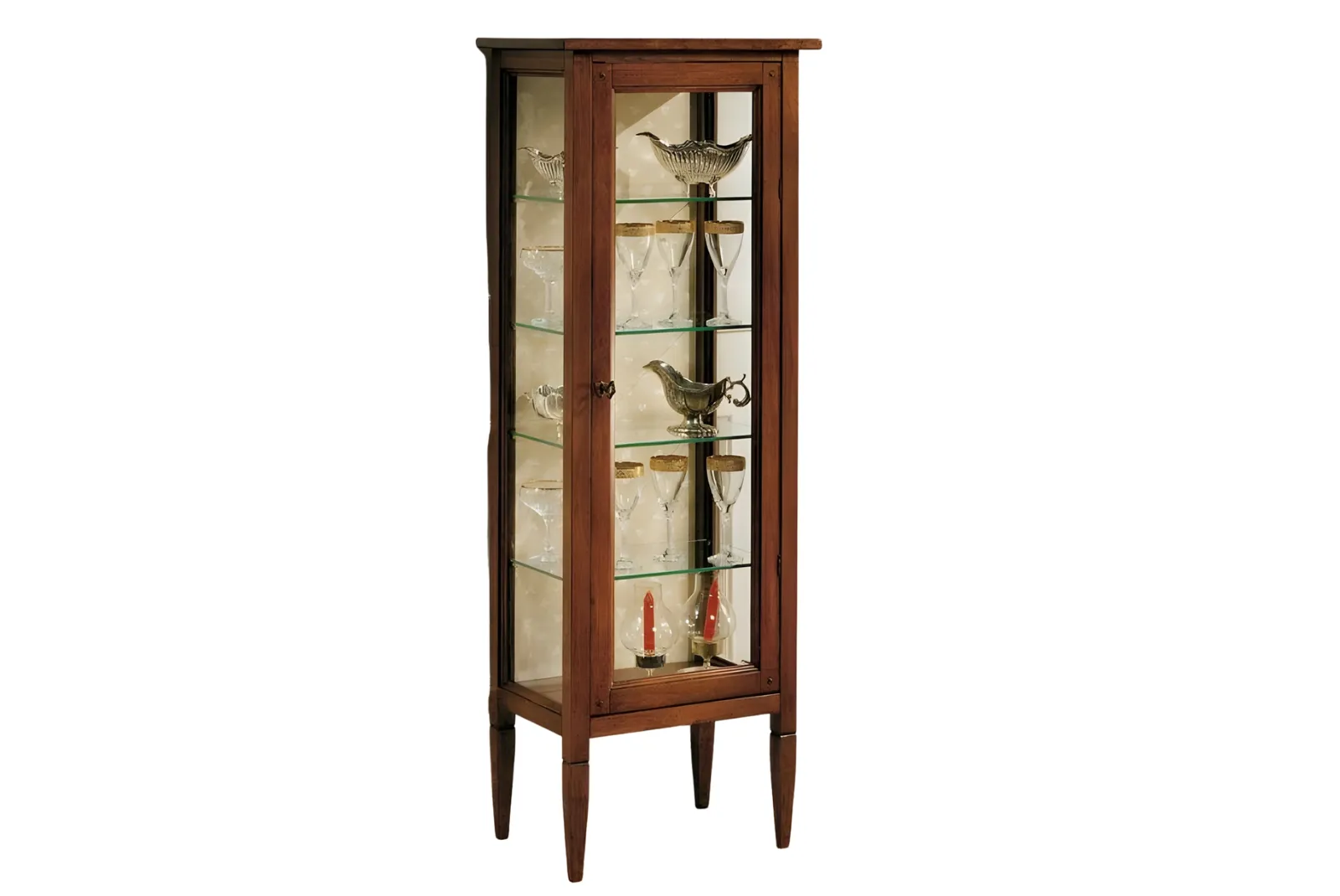Realizzata a mano con maestria, questa Vetrina incarna la bellezza autentica e la semplicità della natura. Le venature uniche del legno, lavorate con finitura Noce, creano un pezzo unico e pieno di carattere. Perfetta per un soggiorno accogliente è un invito alla convivialità e al calore di una casa vissuta.