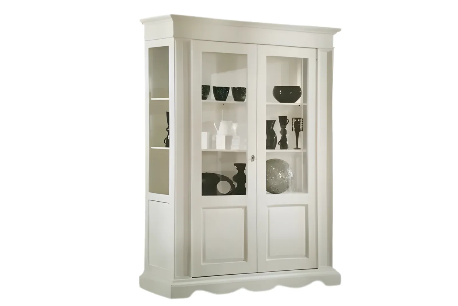 Realizzata a mano con maestria, questa Vetrina incarna la bellezza autentica e la semplicità della natura. Le venature uniche del legno, lavorate con finitura Laccato Bianco, creano un pezzo unico e pieno di carattere. Perfetta per un soggiorno accogliente è un invito alla convivialità e al calore di una casa vissuta.