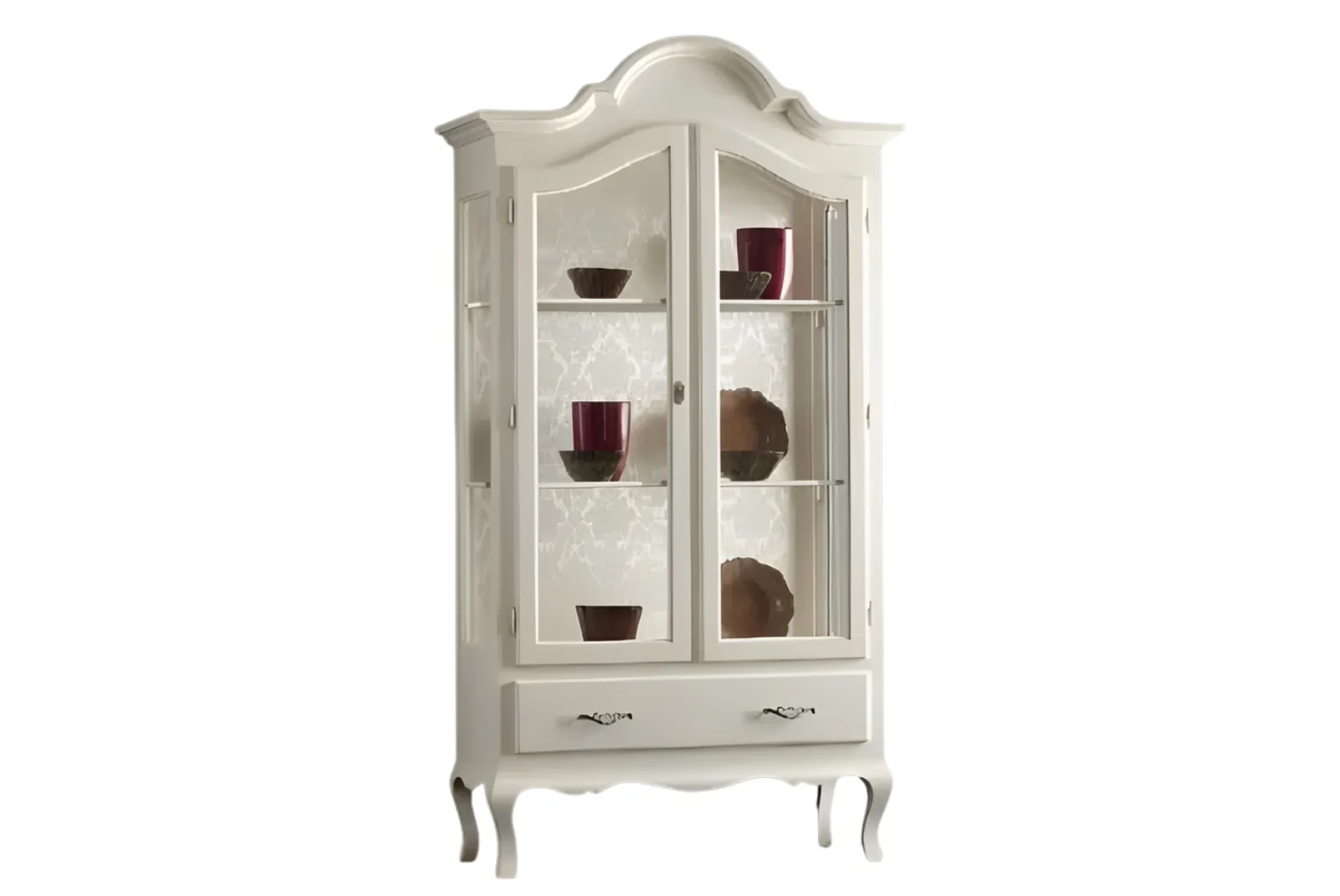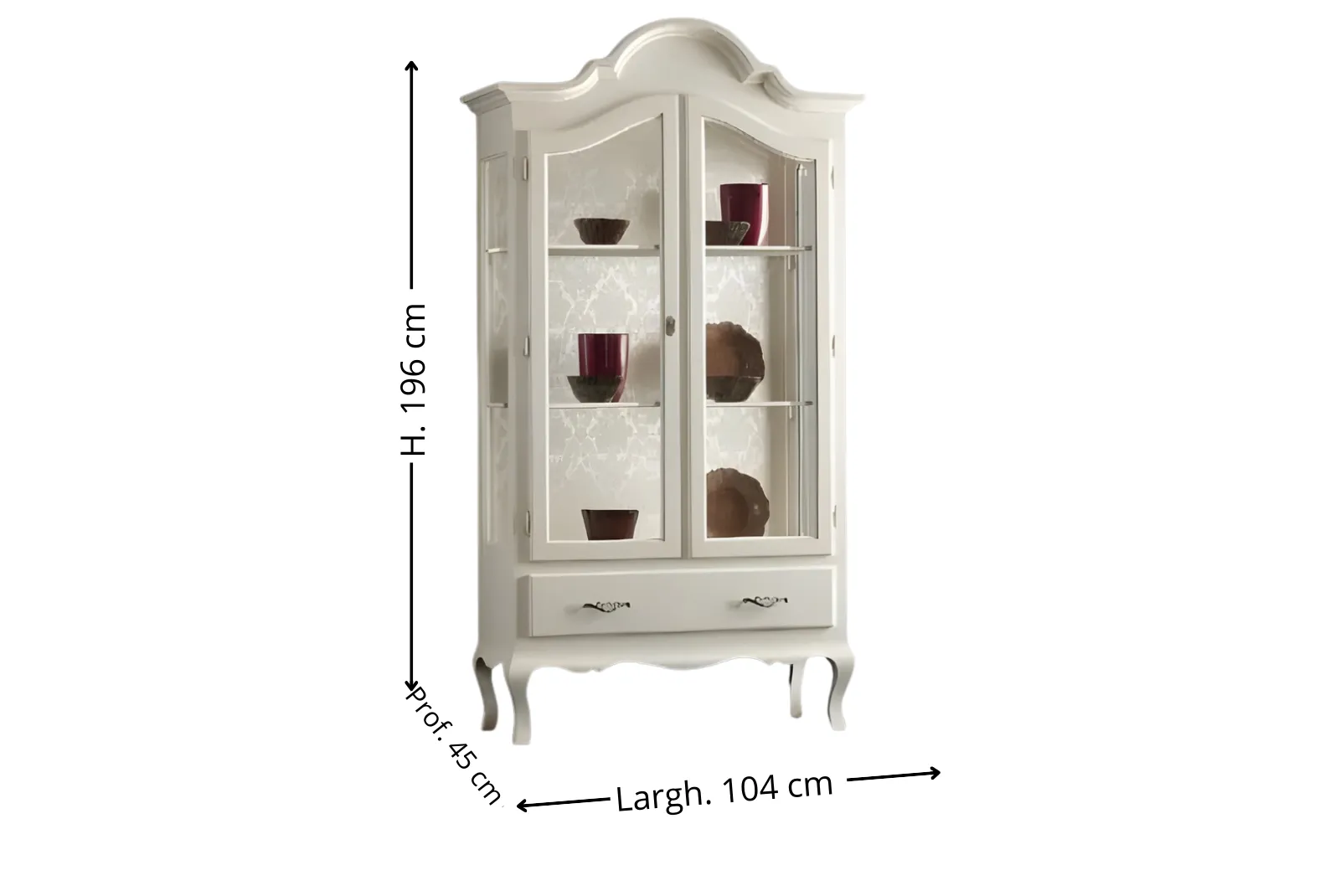 Realizzata a mano con maestria, questa Vetrina incarna la bellezza autentica e la semplicità della natura. Le venature uniche del legno, lavorate con finitura Laccato Bianco, creano un pezzo unico e pieno di carattere. Perfetta per un soggiorno accogliente è un invito alla convivialità e al calore di una casa vissuta.