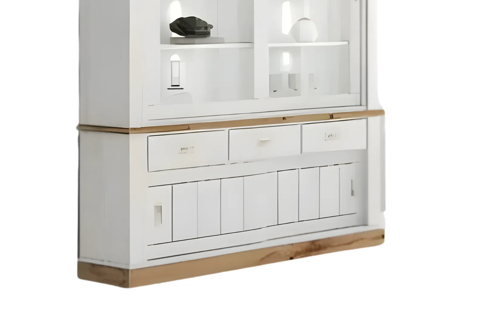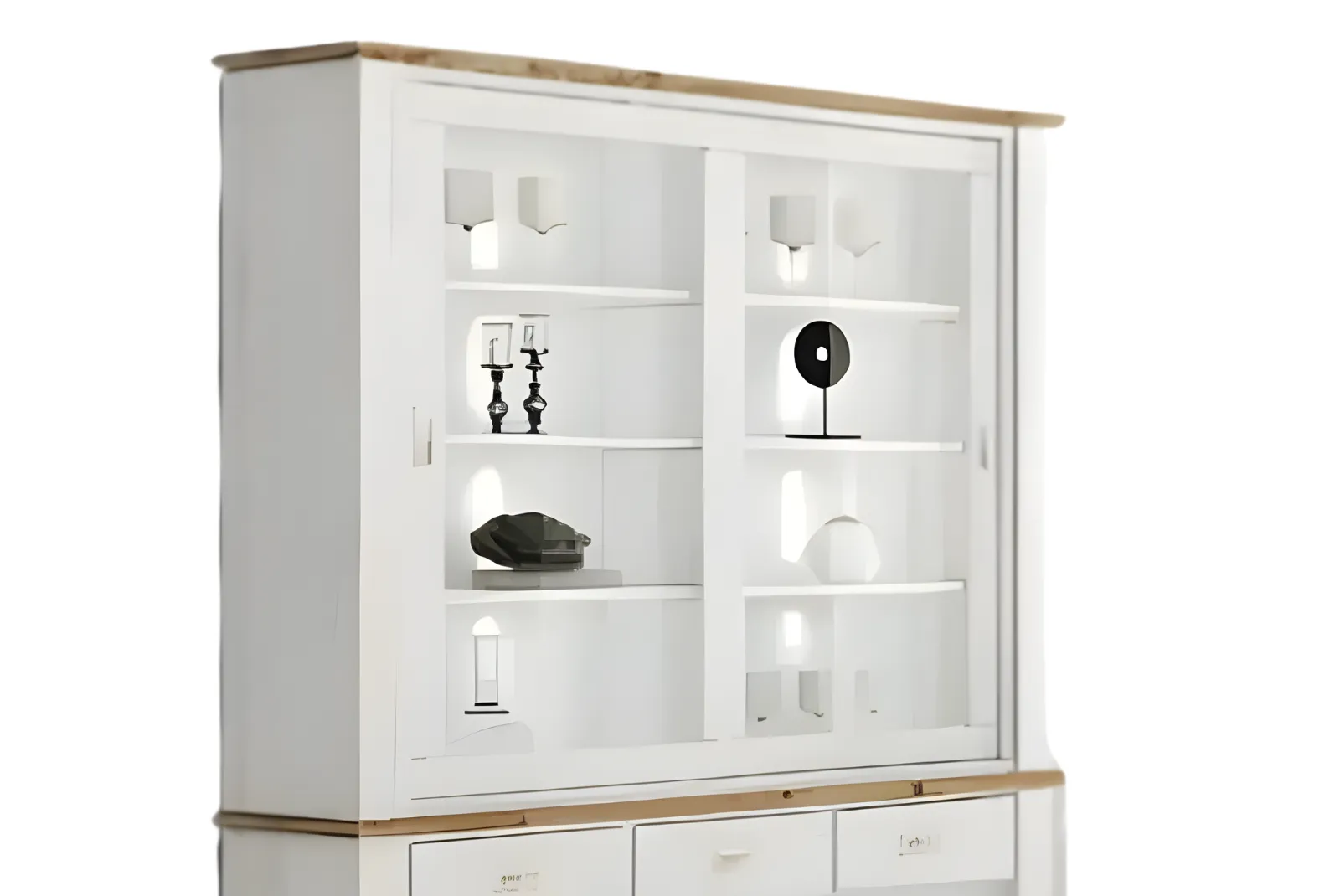 La nostra Vetrina è anche incredibilmente funzionale. Offre ampio spazio per riporre stoviglie, biancheria, libri e altri oggetti. Le ante e i cassetti sono dotati di meccanismi di apertura e chiusura morbidi e silenziosi, per un utilizzo confortevole e senza sforzo.