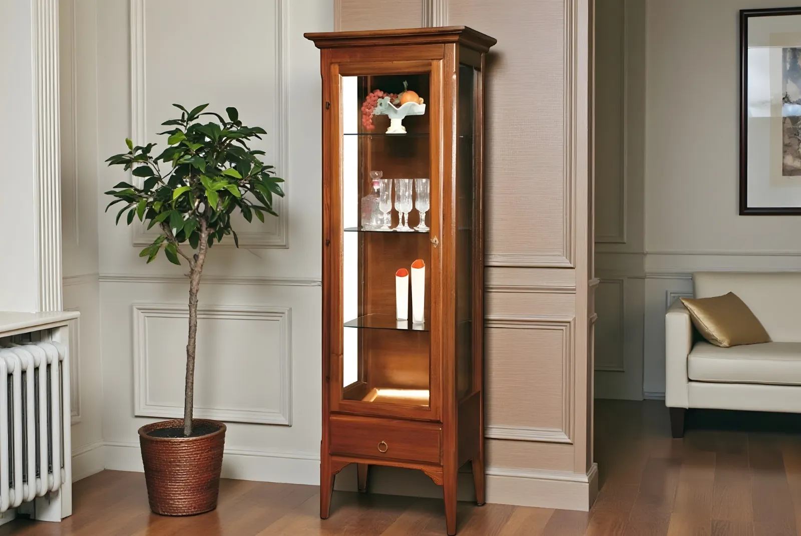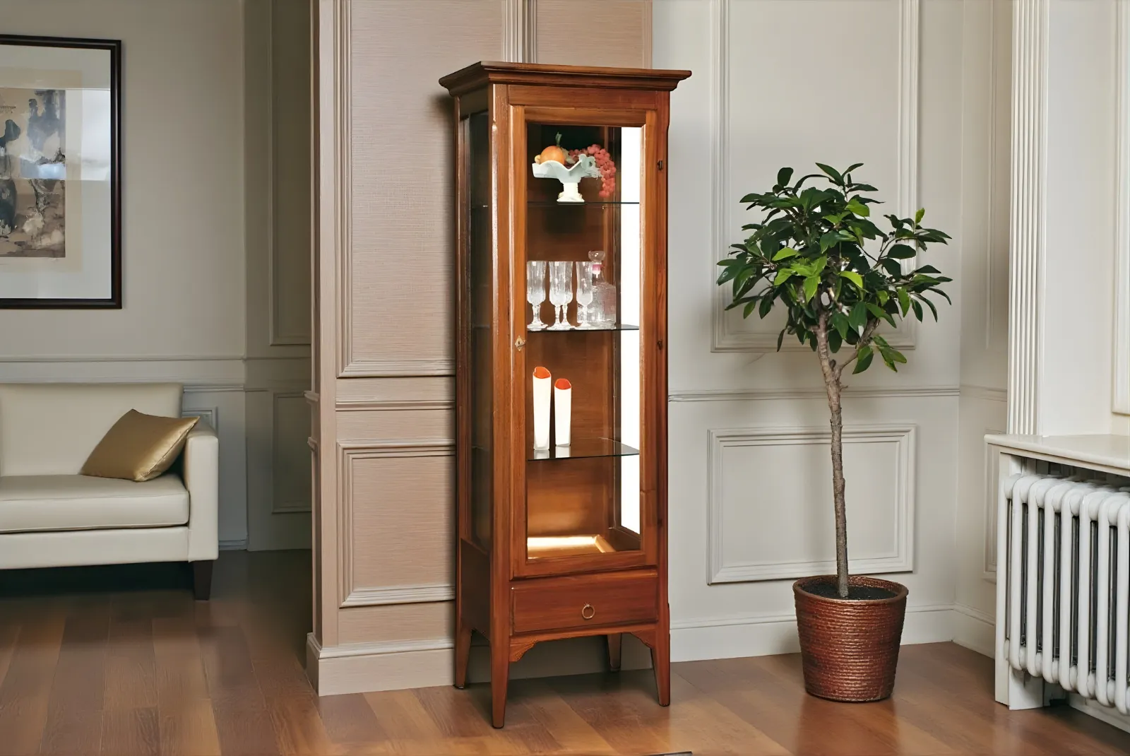 Realizzata a mano con maestria, questa Vetrina incarna la bellezza autentica e la semplicità della natura. Le venature uniche del legno, lavorate con finitura Noce, creano un pezzo unico e pieno di carattere. Perfetta per un soggiorno accogliente è un invito alla convivialità e al calore di una casa vissuta.