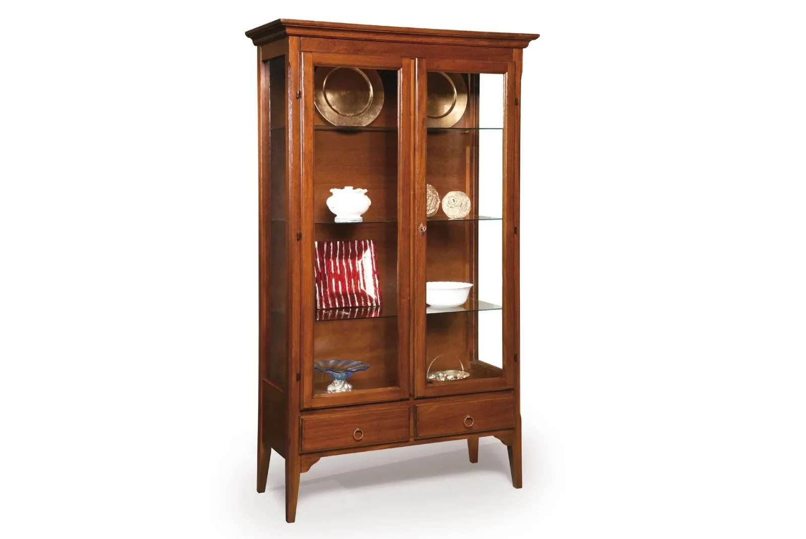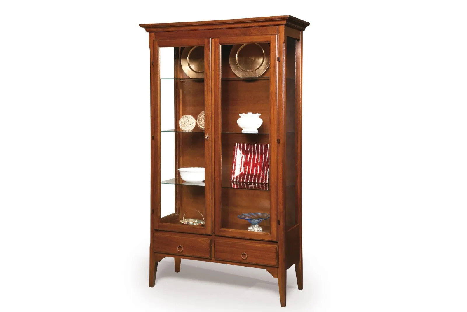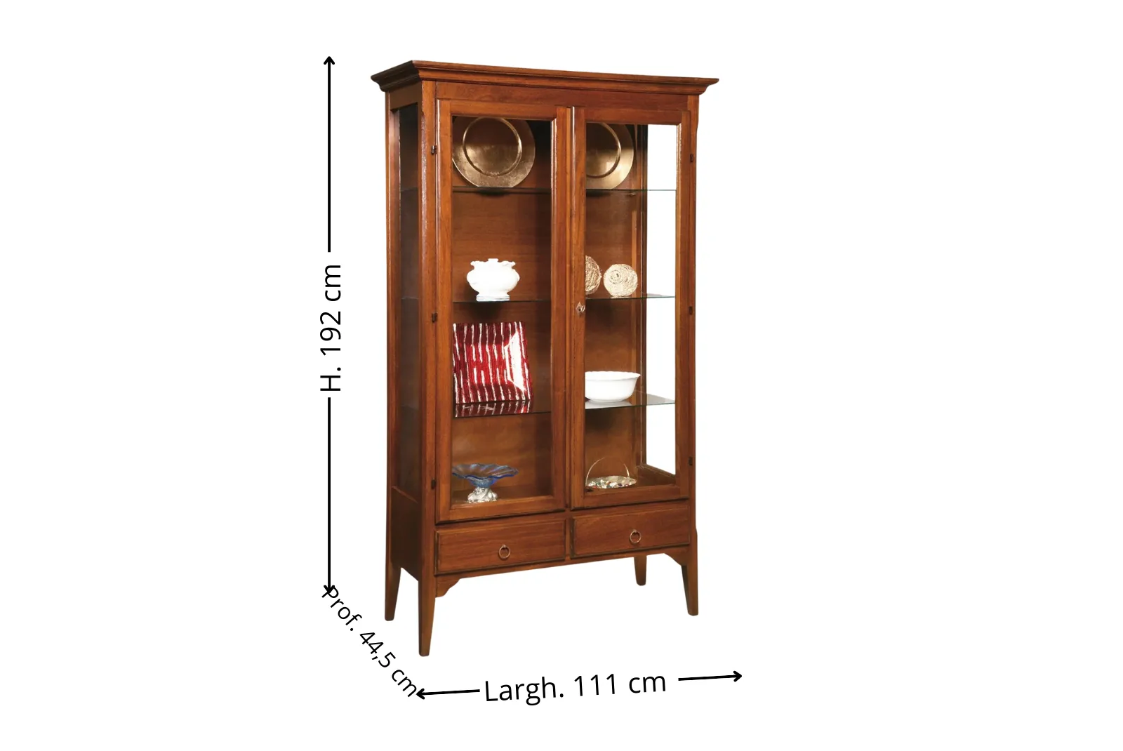 Realizzata a mano con maestria, questa Vetrinetta 2 porte 2 cassetti incarna la bellezza autentica e la semplicità della natura. Le venature uniche del legno, lavorate con finitura Noce, creano un pezzo unico e pieno di carattere.